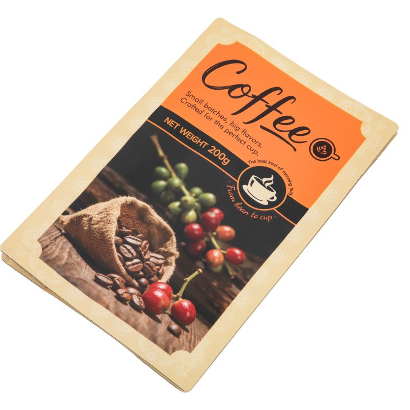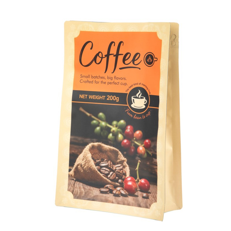 À la maison, le sac à fond plat pour grains de café est un assistant puissant pour les amateurs de café. Chaque fois que des grains de café frais sont achetés, ils peuvent être stockés dans des emballages séparés. De cette façon, différentes variétés de grains de café peuvent être stockées séparément tout en conservant leurs saveurs uniques. Placés de manière ordonnée et ordonnée dans l'armoire de rangement de la cuisine, ils peuvent être retirés selon les besoins, ce qui rend la préparation quotidienne de la préparation du café plus sans souci.