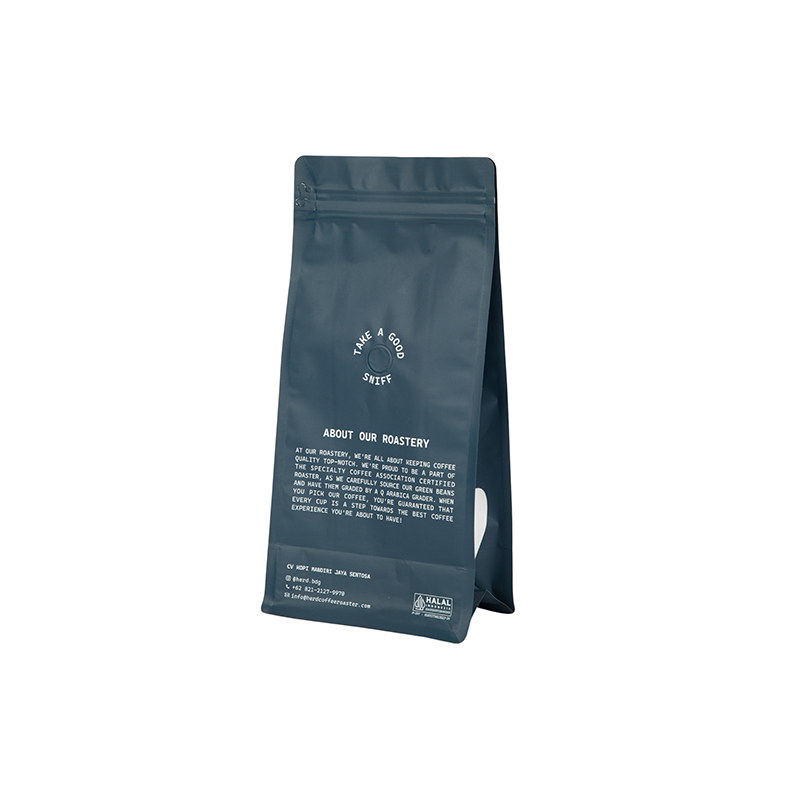La surface du sac est mate, avec le logo de la marque et les informations sur la poudre de café imprimés très clairement, et il n'est pas facile de s'effacer.