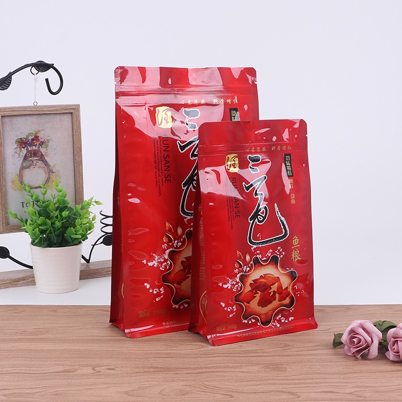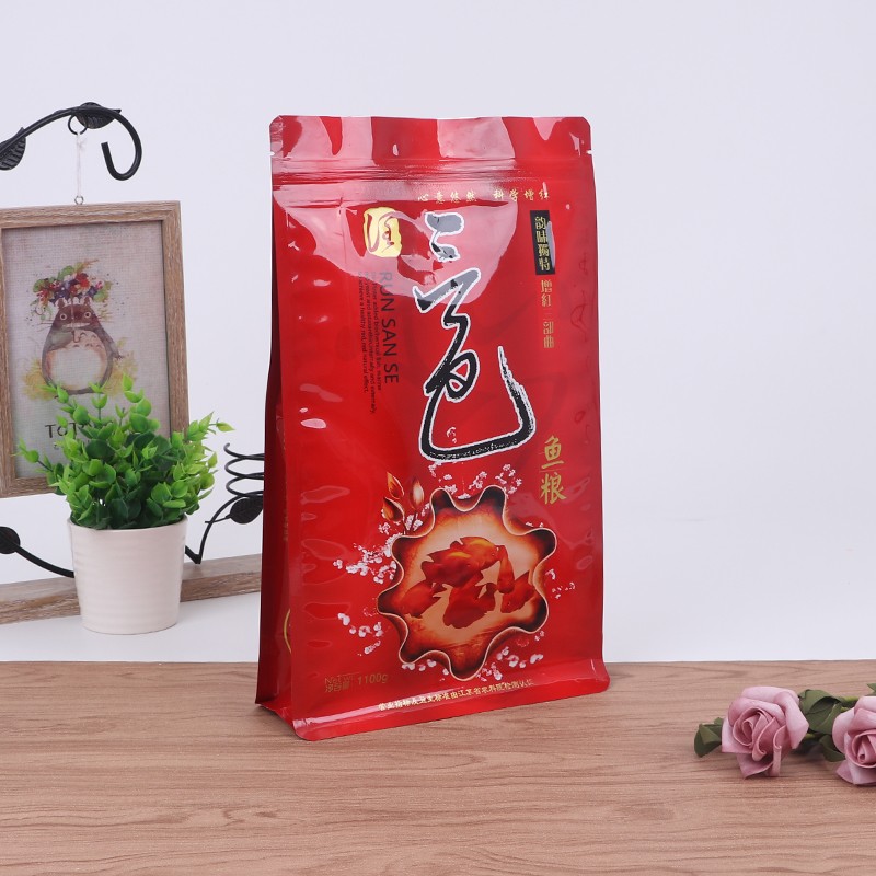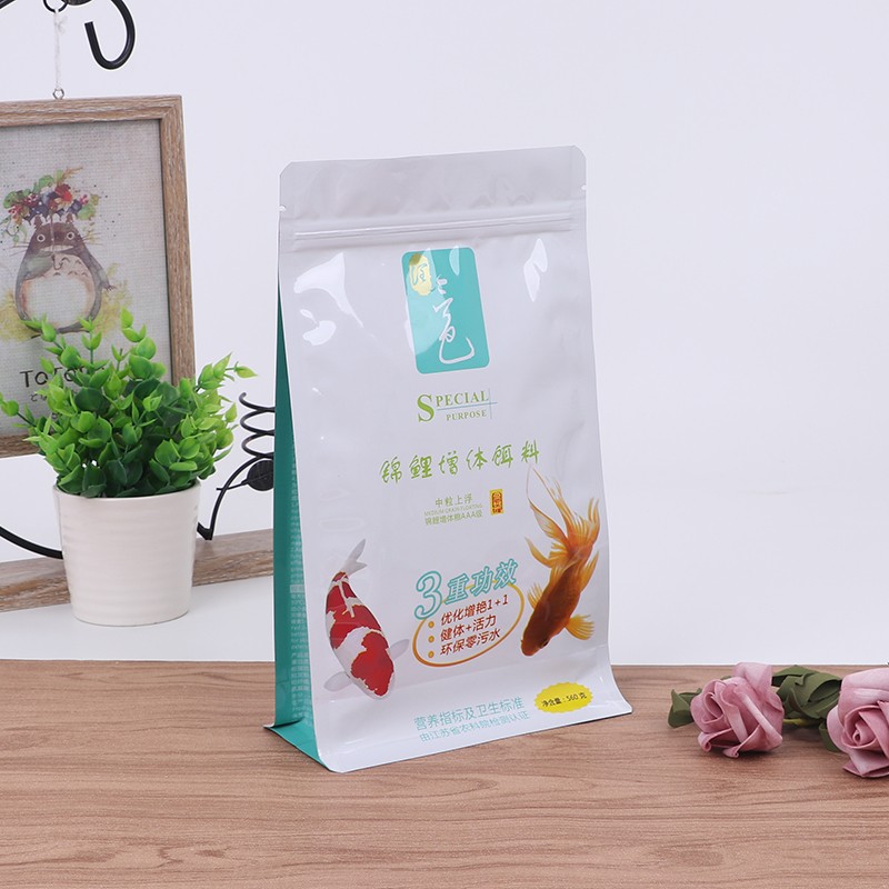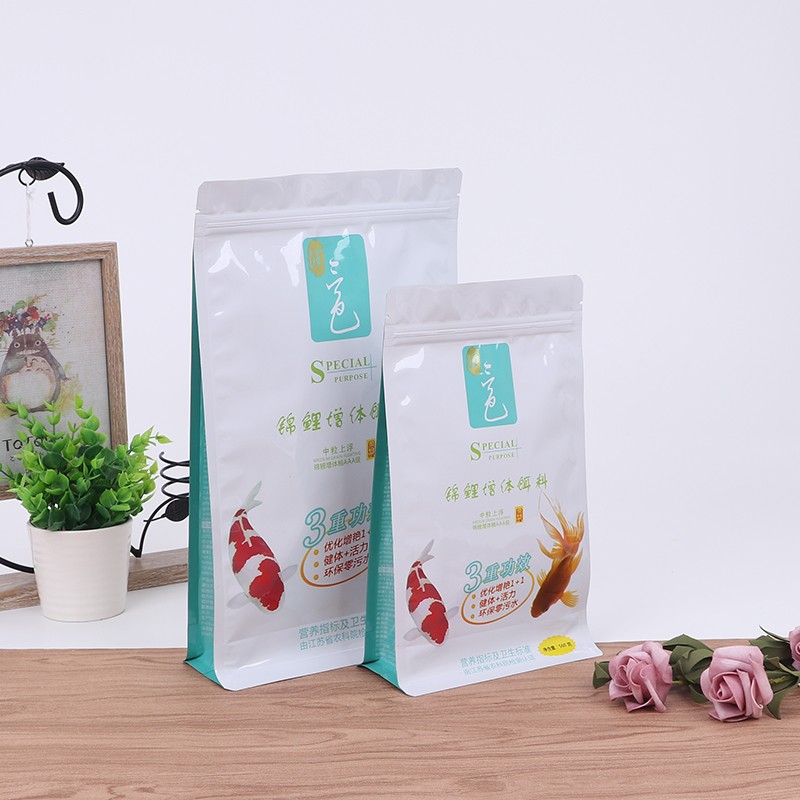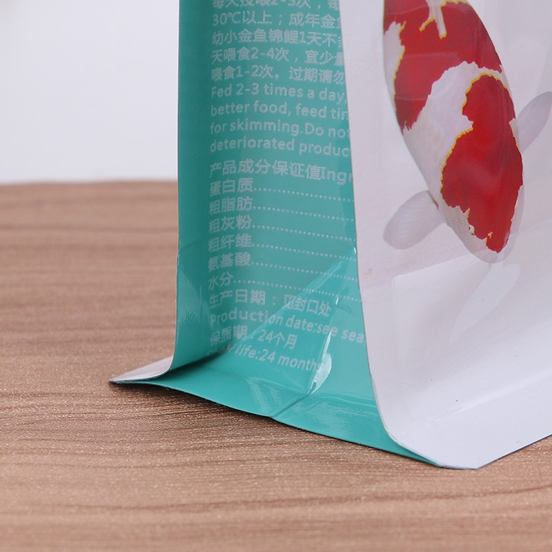 Le bord hermétique du sac à fond plat pour aliments pour poissons est particulièrement étanche, les particules de nourriture pour poissons sont petites. Les sacs ordinaires ont tendance à laisser échapper de la poudre par les coins. Les côtés et le fond de ce sac plat ont des bords renforcés, même si la poudre de nourriture pour poisson est très fine, elle ne coulera pas, c'est beaucoup plus pratique à emballer.